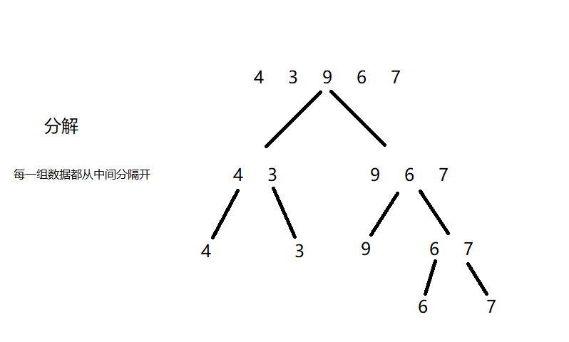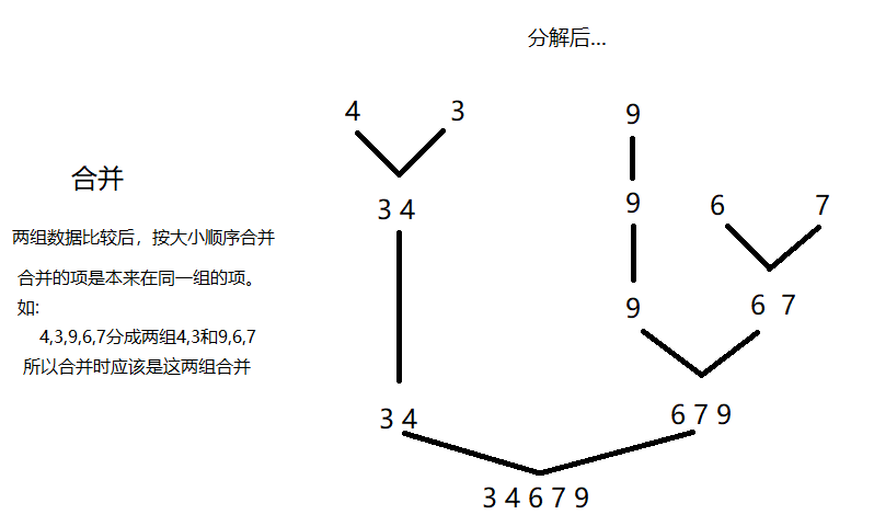 把数组从中间分成前后两部分,然后对前后两部分都进行排序(不断分割,分割到一),再把两个排好序的数组合并,就完成啦。