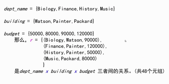 关系r是:D1xD2…xDn的子集。(笛卡尔积的子集)