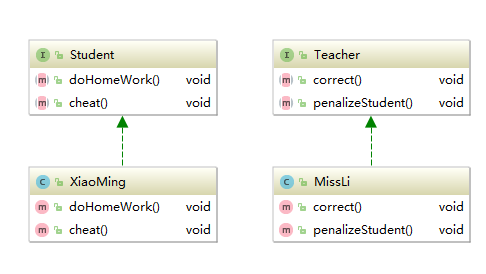 现在我们有Student和Teacher两个接口及其实现类如下,