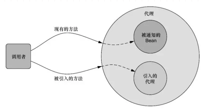 • 当引入接口方法被调用时,代理对象会把此调用委托给实现了新接口的某个其他对象。实际上,一个Bean的实现被拆分到多个类中。