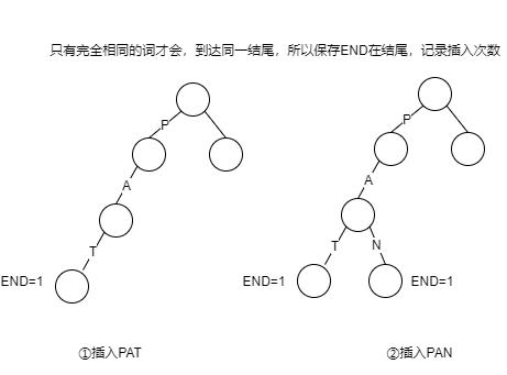 - 在插入时,让最后一个字节的节点记录当前插入的次数(End)。