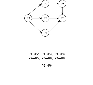 - 先执行箭头前的程序,才能执行箭头后的程序,如P2必须在P1执行完成后,才可执行。