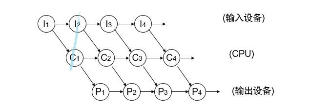 上面我们都是把程序分为同一类内容处理,那么假设程序细分为3种操作I(输入设备)、C(cpu)、O(输出设备),如下。